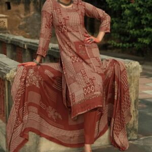 The set includes a pure viscose pashmina digital print top, a matching pure pashmina bottom, and a pure viscose pashmina digital print dupatta that completes the ensemble with timeless charm. Perfect for festive occasions, family gatherings, or casual elegance, LARANA brings a blend of tradition and modern fashion to your wardrobe.
